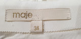 MAJE White Embroidery Cream & Grey Leather Trim Short Mini Pencil Skirt FR34 UK6