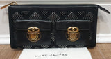 MARC JACOBS Black Fabric & Leather Gunmetal Crystal Embellished Large Purse