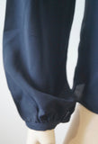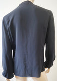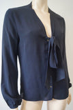 MICHAEL KORS Blue Black Silk Tie Fasten V Neck Long Sleeve Blouse Shirt Top UK10