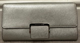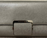 MICHAEL KORS Silver Metallic Leather Branded Detachable Shoulder Clutch Bag