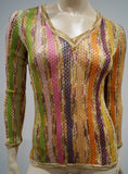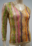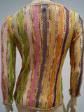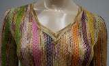 MISSONI Multicolour Stripe Cotton Blend V Neck Loose Net Knitwear Jumper Top 40