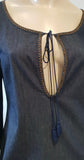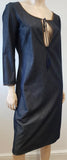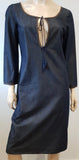 MIU MIU Dark Blue Cotton Scoop Eyelet Neckline 3/4 Sleeve Midi Dress 44 UK12