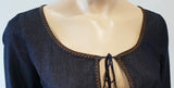 • MIU MIU Dark Blue Cotton Scoop Eyelet Neckline 3/4 Sleeve Midi Dress 44 UK12