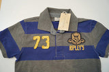 SCOTCH SHRUNK Boys Grey & Purple Big Stripe Branded Polo Shirt Top BNWT