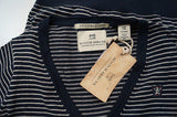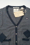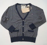 SCOTCH SHRUNK Boy's Navy & Cream Stripe Knitted Cotton V Neck Cardigan Top BNWT