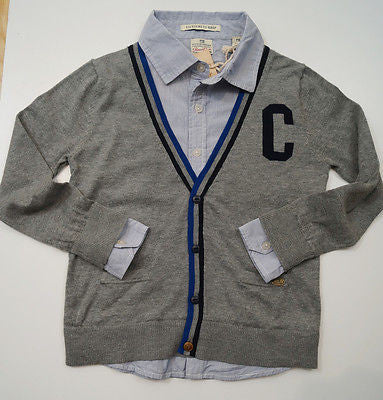 SCOTCH SHRUNK Cotton Grey Long Sleeve Knitted Cardigan & Blue Shirt Top BNWT