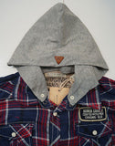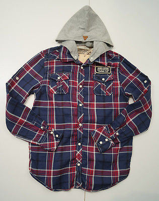 SCOTCH & SODA / SHRUNK Boys Blue & Red Checked Long Sleeve Hoodie Shirt Top BNWT