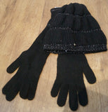 PINKO Black & Silver Sparkle Wool Blend Pull On Beanie Hat & Long Length Gloves