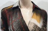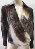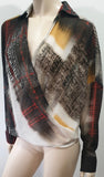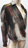 PINKO Multi Colour Abstract Print Sheer Crossover Long Sleeve Blouse Shirt Top
