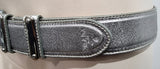 PRADA Made In Italy Silver Metallic Buckle Fastened Branded Leather Belt 85/34