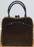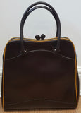 • PRADA MILANO Chocolate Brown Leather Orange Trim Branded Dual Handle Tote Bag