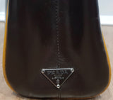 PRADA MILANO Chocolate Brown Leather Orange Trim Branded Dual Handle Tote Bag