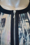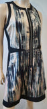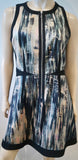 REBECCA TAYLOR Blue Black Cream Pink Abstract Print Round Neck Sleeveless Dress