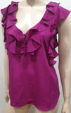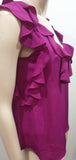 REBECCA TAYLOR Hot Pink Ruffle V Neckline Sleeveless Blouse Shirt Top 4 UK8