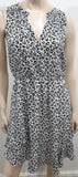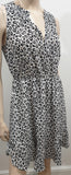 REBECCA TAYLOR White & Black Silk Animal Print Sleeveless Short Mini Dress 2 UK6