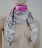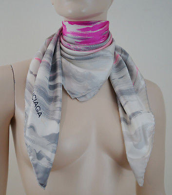 BALENCIAGA Pink & Grey 100% Silk Spiral Print Branded Handkerchief Scarf