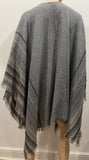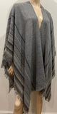 EILEEN FISHER Grey Brown Multi Colour Wool Blend Fringed Wrap Shawl Cape 1 Size