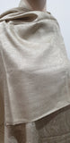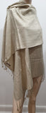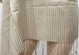 PASHMINA Beige Gold Sheen Fine Cashmere Paisley Stripe Fringed Large Shawl Scarf