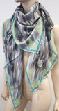 VASSILISA Mint Green & Grey Silk Mermaid Tail Print Extra Large Square Scarf