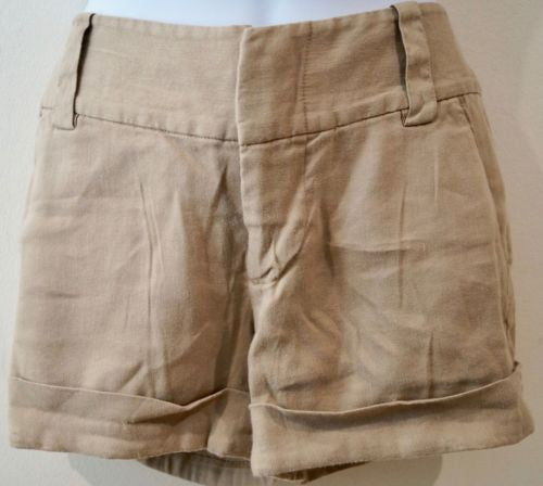 ALICE & OLIVIA Beige Linen Blend Short Overturned Hemline Shorts US6 UK10