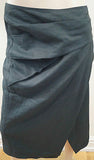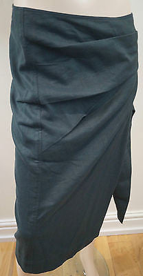 DONNA KARAN NEW YORK Black Wool Linen Blend Wrap Pleated Pencil Skirt IT42 UK10