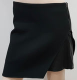 HELMUT LANG Black Wool Blend & Leather Panel Lined Short Mini Skirt 8 UK12