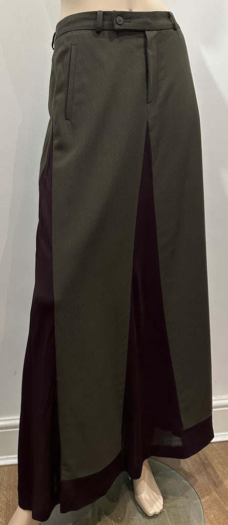 JEAN PAUL GAULTIER FEMME Khaki & Purple Wool Blend Long Length Maxi Skirt UK10