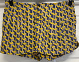 RAG & BONE Beige Yellow & Blue Silk Satin Geometric Print Hotpants Shorts 4 UK8