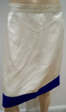 RENZO Cream 100% Silk Sheen Blue Trim Hemline Short Length Evening Skirt 44