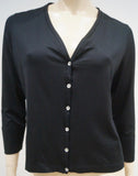 SONIA RYKIEL Black Sheen V Neck Metallic Button Fastened 3/4 Sleeve Cardigan Top