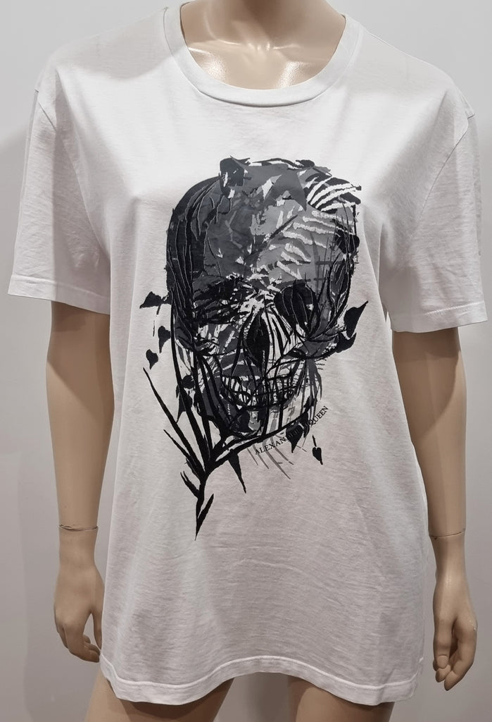 ALEXANDER MCQUEEN White Cotton Grey Skull Print Short Sleeve T-Shirt Tee Top XL