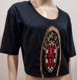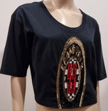 MAISON MARTIN MARGIELA Black Cotton Sequin Embellished Short T-Shirt Tee Top M