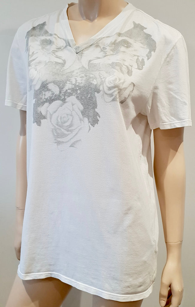 MAISON MARTIN MARGIELA White Cotton Floral Print Short Sleeve T-Shirt Tee Top