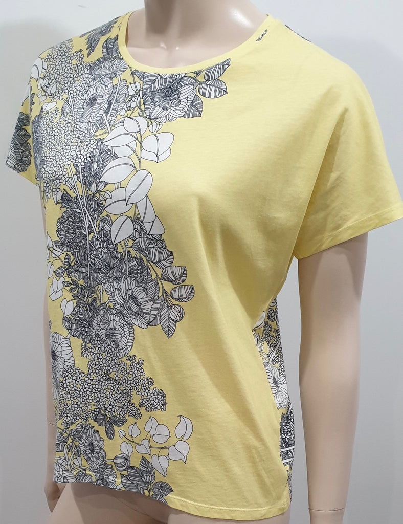 SANDRO PARIS Yellow Grey White Cotton Floral Print Short Sleeve T-Shirt Top 2 UK