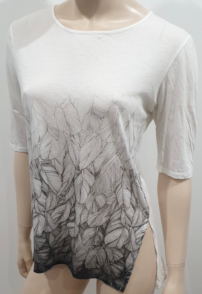 STELLA MCCARTNEY White & Grey Floral Leaf Print T-Shirt Tee Top 44 UK14
