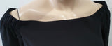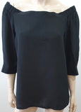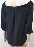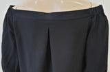 • THEORY Black Silk Elasticated Wide Neck Off Shoulder 3/4 Sleeve Blouse Tunic Top
