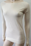 THEORY Cream Merino Wool Fine Knit Scoop Neck Long Sleeve Jumper Sweater Top P