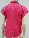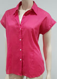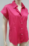 THEORY Pink 100% Cotton Semi Sheer Collared Short Sleeve Blouse Shirt Top L