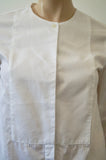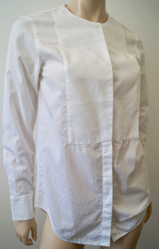 THEORY White 100% Cotton Collarless Bib Detail Long Sleeve Formal Blouse Shirt