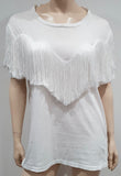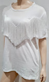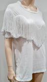 ACNE STUDIOS White Cotton JOSHI FRINGE Silk Blend Fringed T-Shirt Tee Top M