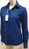 AGNONA Navy Blue Silk Embossed Stripe Collared Formal Blouse Shirt Top 42 UK10