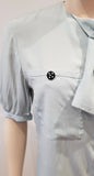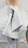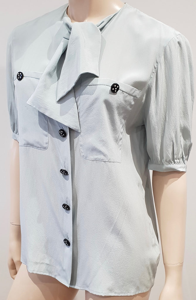 AKRIS Pale Mint Green 100% Silk Tie Neckline Short Sleeve Blouse Shirt Top CH36