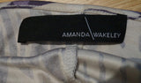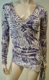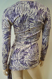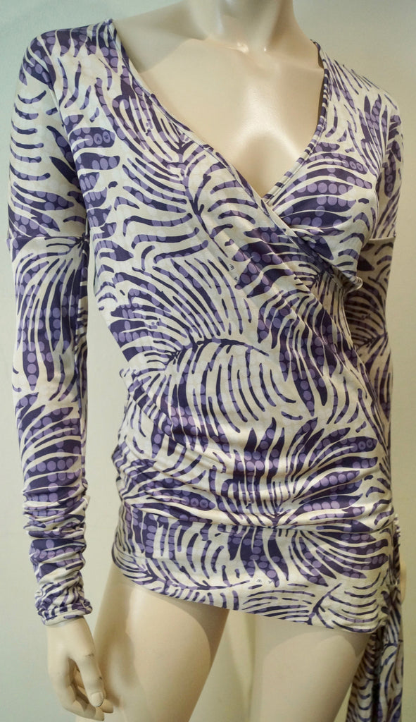 AMANDA WAKELEY Cream Purple Lilac 100% Silk V Neck Long Sleeve Wrap Tie Top UK8