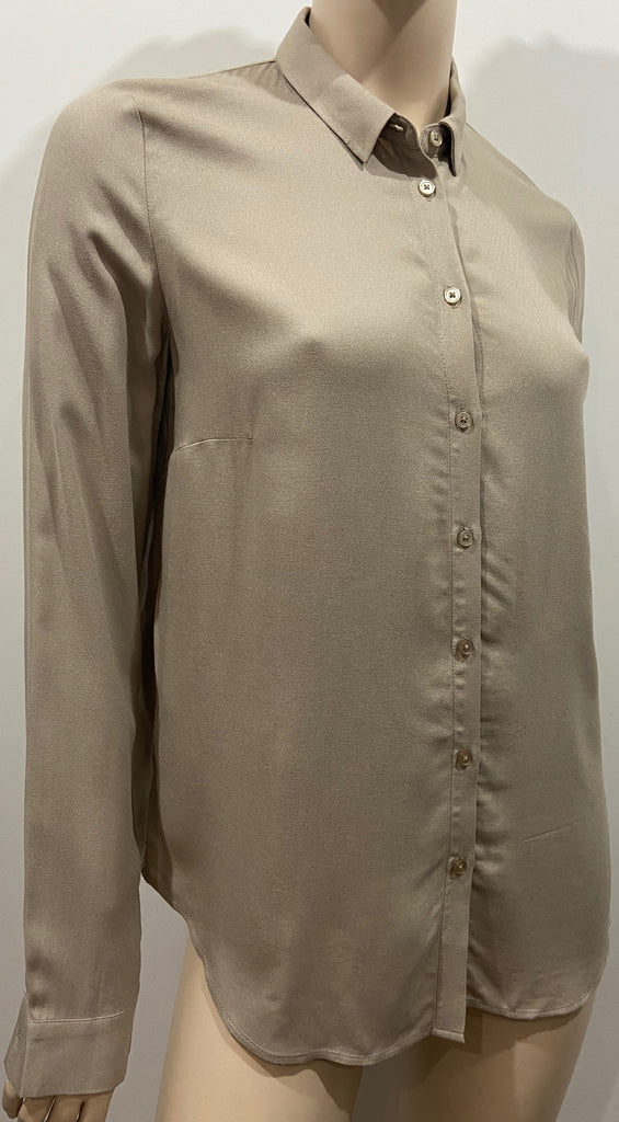 AMERICAN VINTAGE Women's Beige Taupe Collared Long Sleeve Blouse Shirt Top S