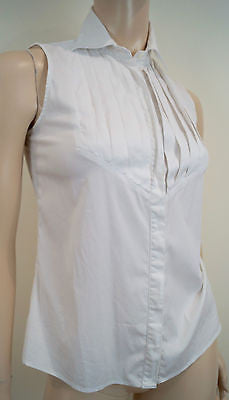 ARMANI COLLEZIONI White Pleated Bib Collared Sleeveless Formal Shirt Top I38 UK6