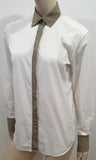 BALLY White & Beige Trim Cotton Collared Long Sleeve Formal Blouse Shirt Top 10