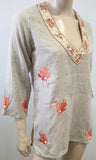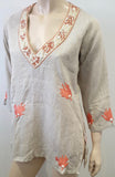 BARBARA GERWIT Beige V Neck Embroidered Shell Detail Beachwear Tunic Kaftan Top