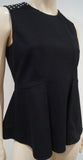 BELSTAFF Black Round Neck Sleeveless Silver Stud Shoulder Pleat Hem Top 44 UK12