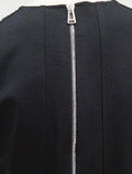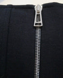 Exposed silver tone zipper to the rear