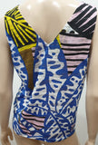 BIMBA Y LOLA Multi-Colour Cotton Blend Abstract Print Sleeveless Vest T Shirt To